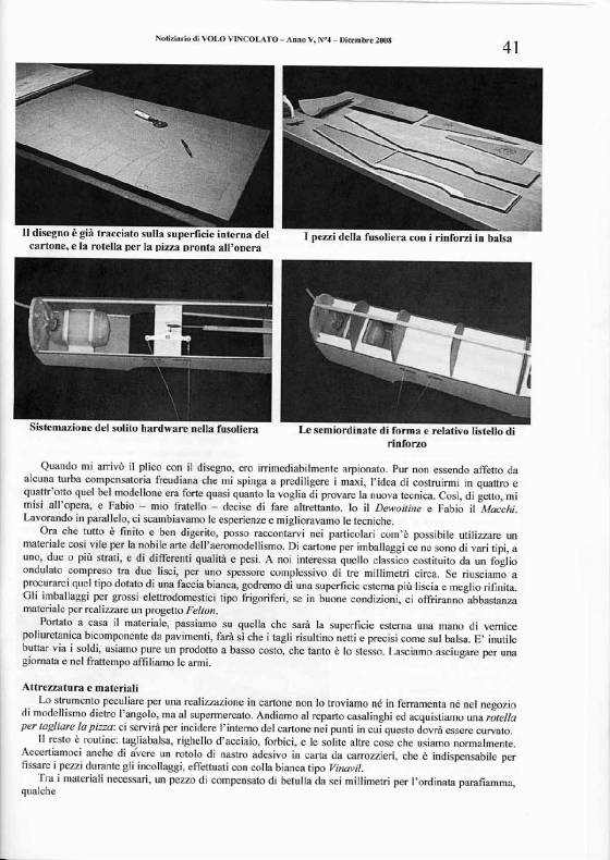 Gabriele Macri wrote the following article in December 2008 for an Italian CL publication entitled "Notiziario di Volo Vincolato". The article featured, in Italian, some of my building techniques and design plans.